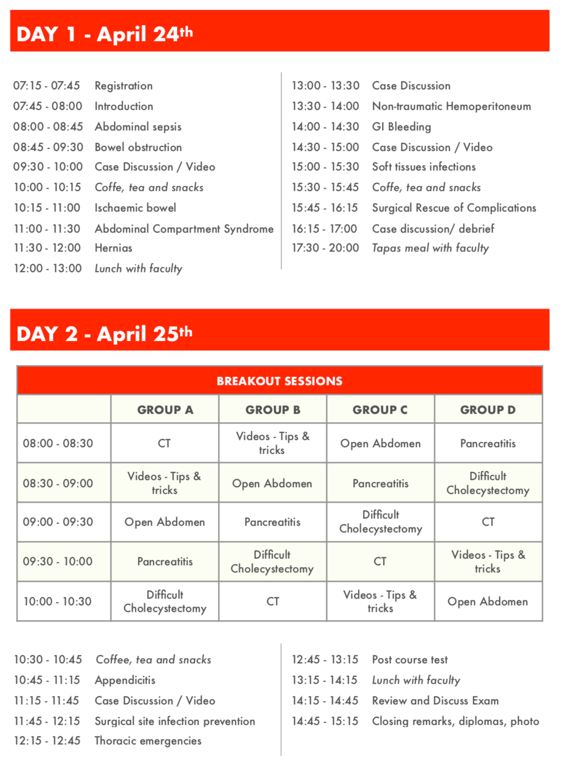 Emergency Surgery Course ble lansert med stor suksess i Milano, Italia i januar 2019, og har siden blitt avholdt en rekke ganger i USA. I april 2020 arrangeres kurset i Norge!